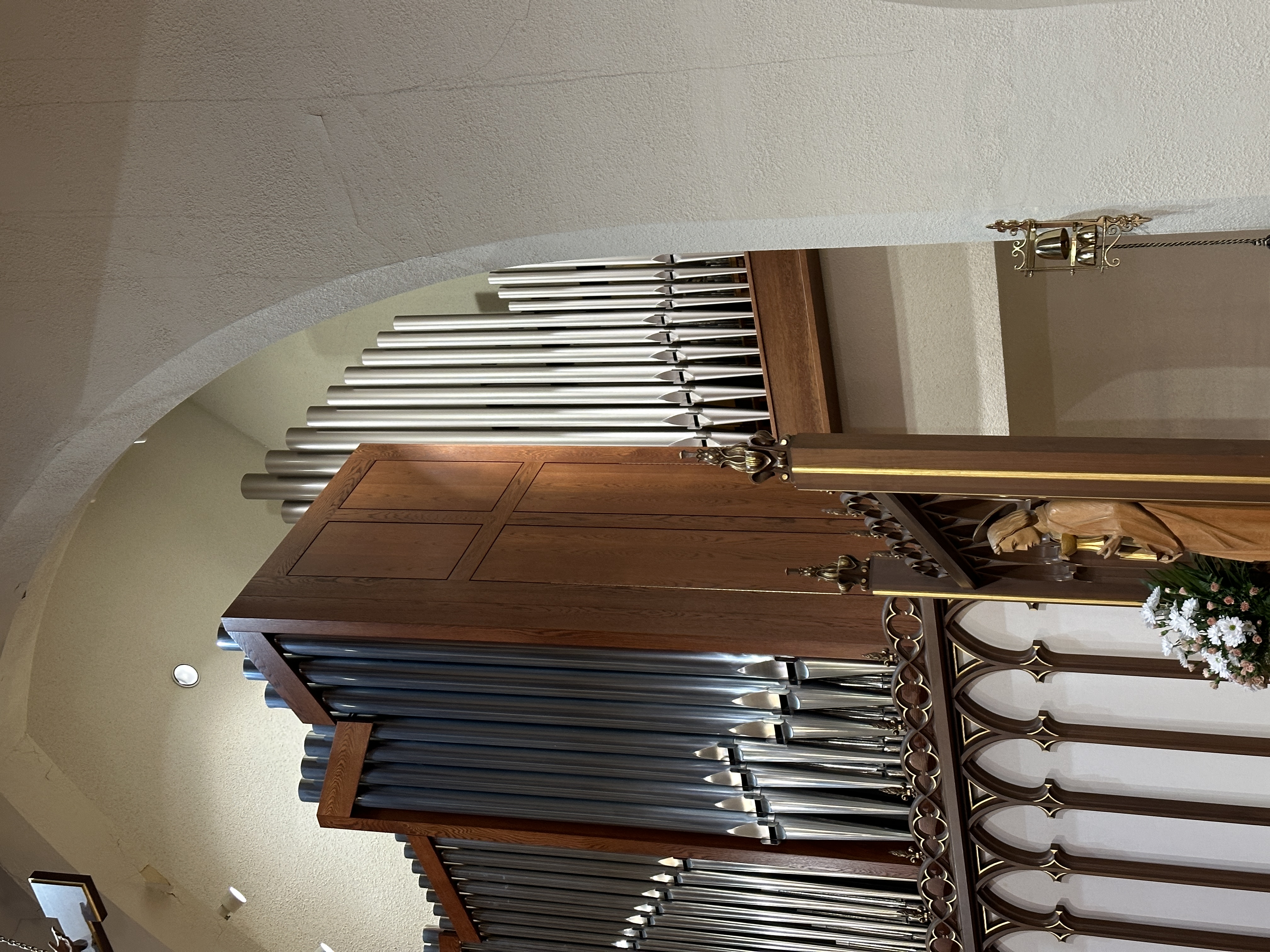 This organ was built in 1998 as a 7 rank encased organ for the new Family Chapel of the LaPort Hospital in LaPort, Indiana. In 2020 the hospital relocated and the organ was moved to the Episcopal Cathedral of St. James in South Bend with the intention to enlarge the organ to best fit the new space. In May of 2023, we competed a new independent Great and Pedal for this organ, installing it in a space behind the original case, which became the Swell. The original facade Principal became the Pedal Principal. The enlarged organ fills the room fully with a grand sound worthy of the building. Please stop by if you are in the area. It is a most welcoming group and we are honored to be part of their family.